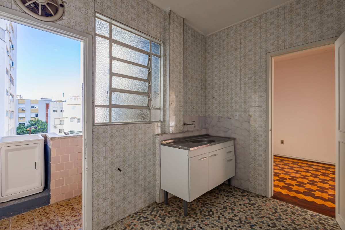 No Bairro Bom Fim na Rua Santo Antônio, 938, apartamento com 104m² de área privativa, 3 dormitórios, living amplo com sacada, sala de jantar, banheiro social, cozinha com área de serviço separada, dependência e banheiro auxiliar, vista livre e elevador.